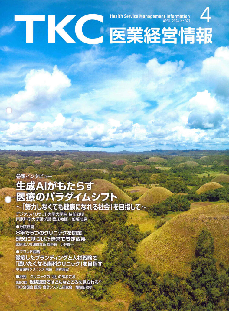 なお、TKC医業・会計システム研究会の機関誌であり、一般書店等での販売は行われておりません。TKC会員の税理士向けに提供される刊行物であるため、誌面本文の引用・転載は行っておりません。ご理解のほどお願いいたします。